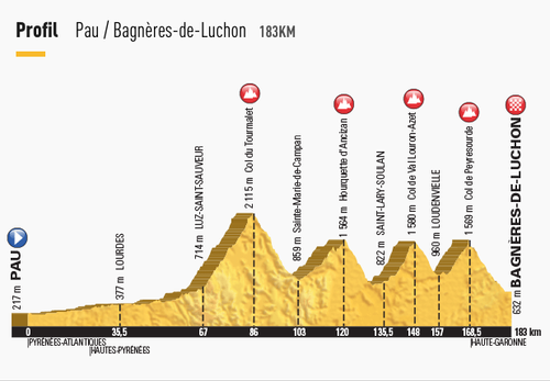 Une étape de 183 km qui, après le célèbre col du Tourmalet empruntera la montée de la Hourquette d'Ancizan avant d’affronter les cols de Val-Louron-Azet et de Peyresourde (illustration copyright www.letour.fr/ A.S.O.)