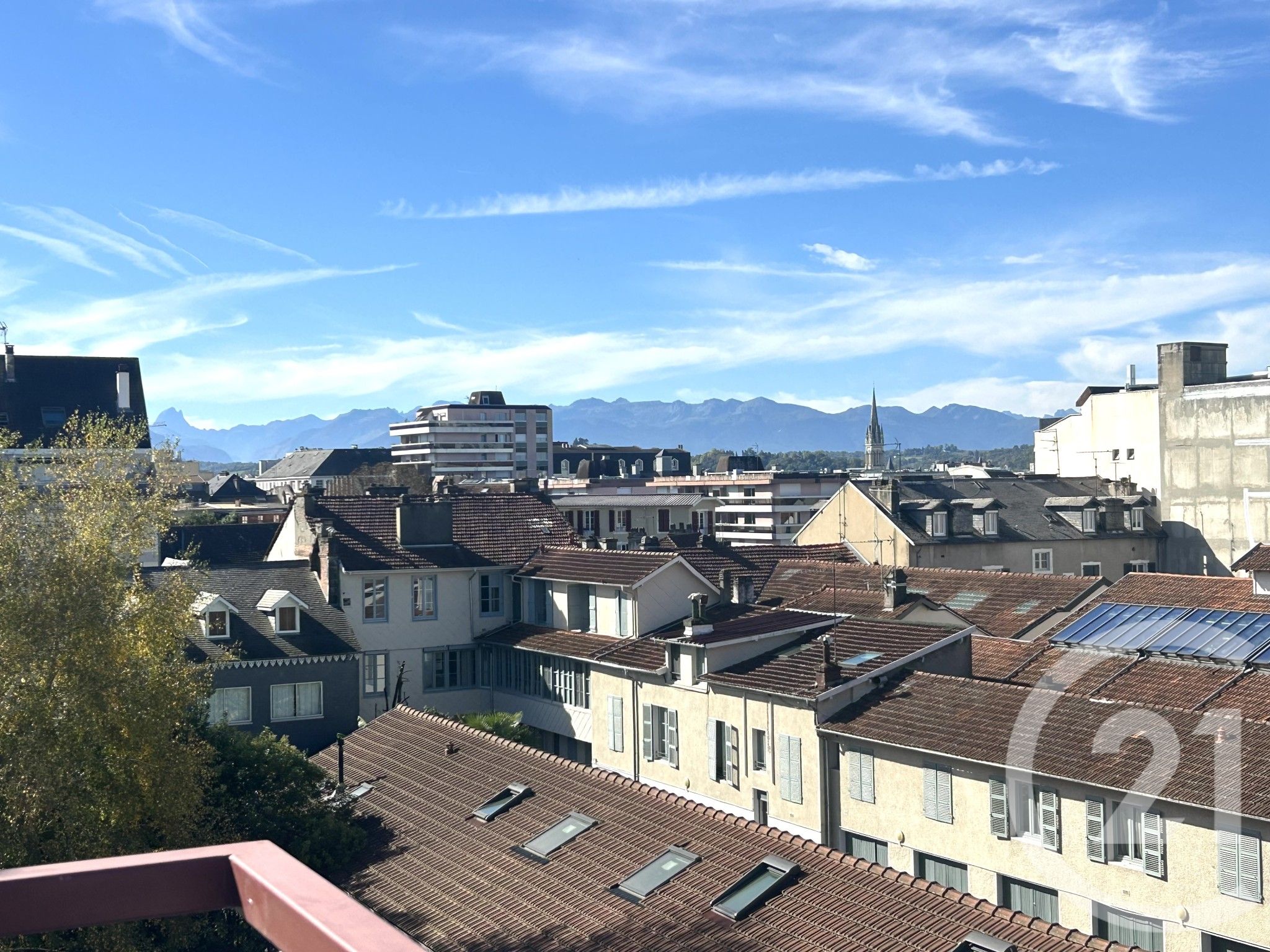 une première de 21 m², plein ciel, avec une vue dégagée sur les toits et un panorama majestueux sur la chaîne des Pyrénées,